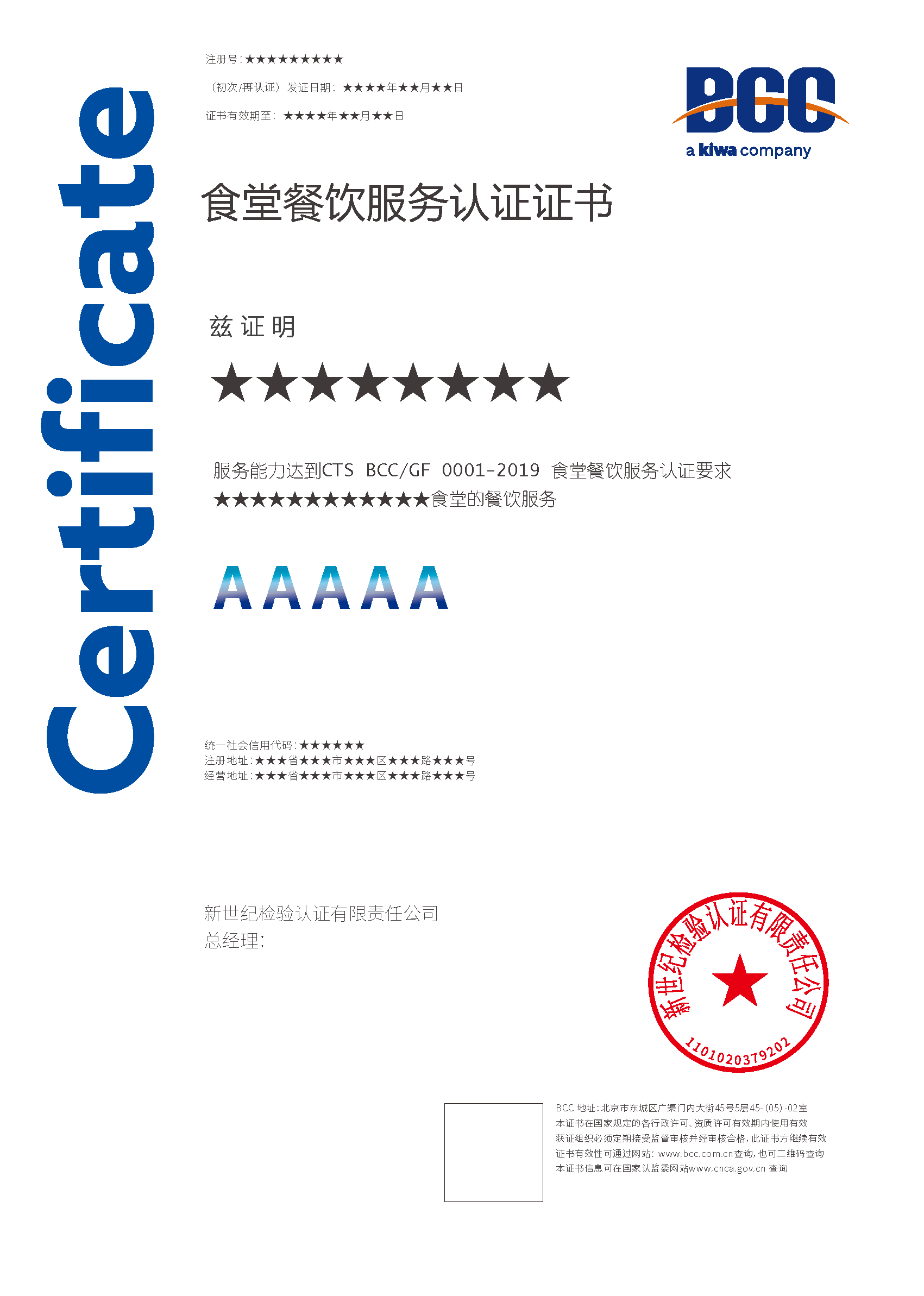 食堂餐飲服務(wù)認證的依據(jù)是RB/T 309-2017《餐飲服務(wù)認證要求》,以及新世紀內(nèi)部技術(shù)規(guī)范CTS BCC/GF 0001-2019《食堂餐飲服務(wù)認證要求》。主要針對機關(guān)、學校等企事業(yè)單位供應(yīng)其內(nèi)部職工、學生等就餐的場所進行認證。