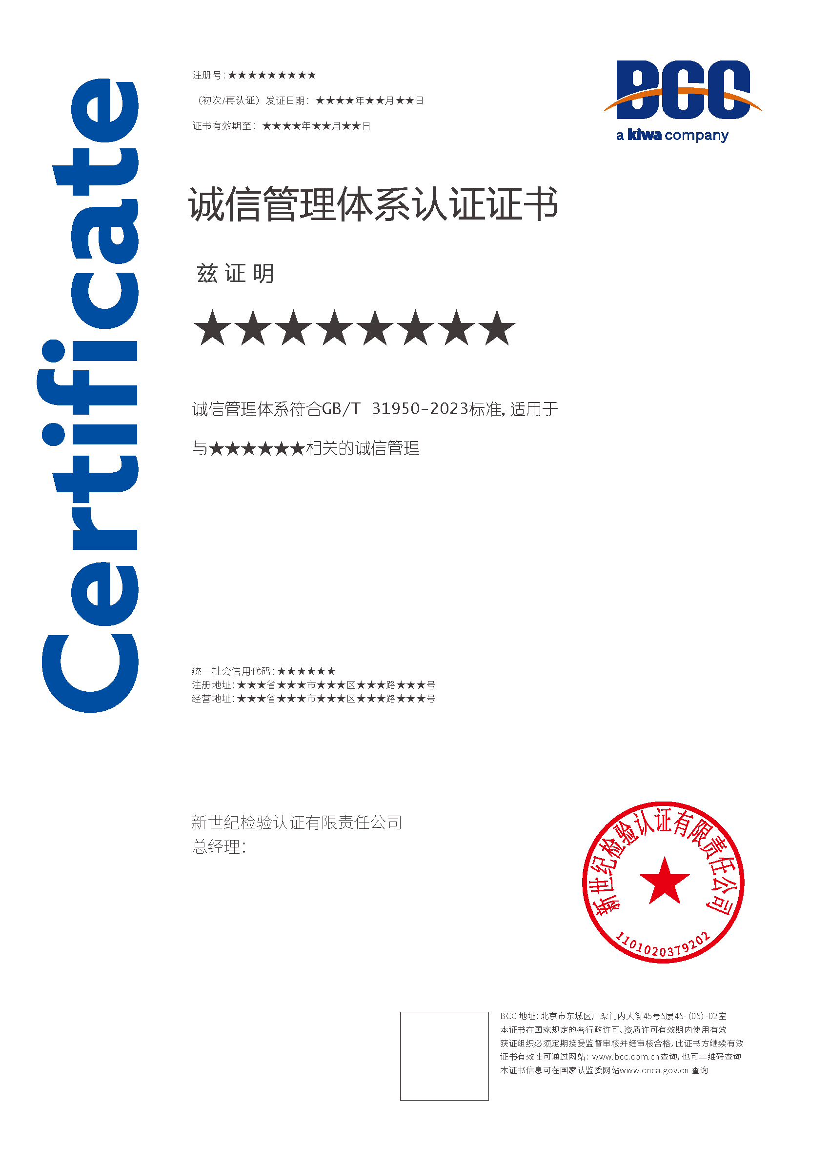 誠信管理體系認(rèn)證,是與客戶建立信任關(guān)系的樞紐,同時也是樹立誠信形象的關(guān)鍵,不僅能夠真正地實現(xiàn)顧客滿意,還能幫助企業(yè)建立誠信管理制度,在未來激烈的市場競爭中取得領(lǐng)先優(yōu)勢!