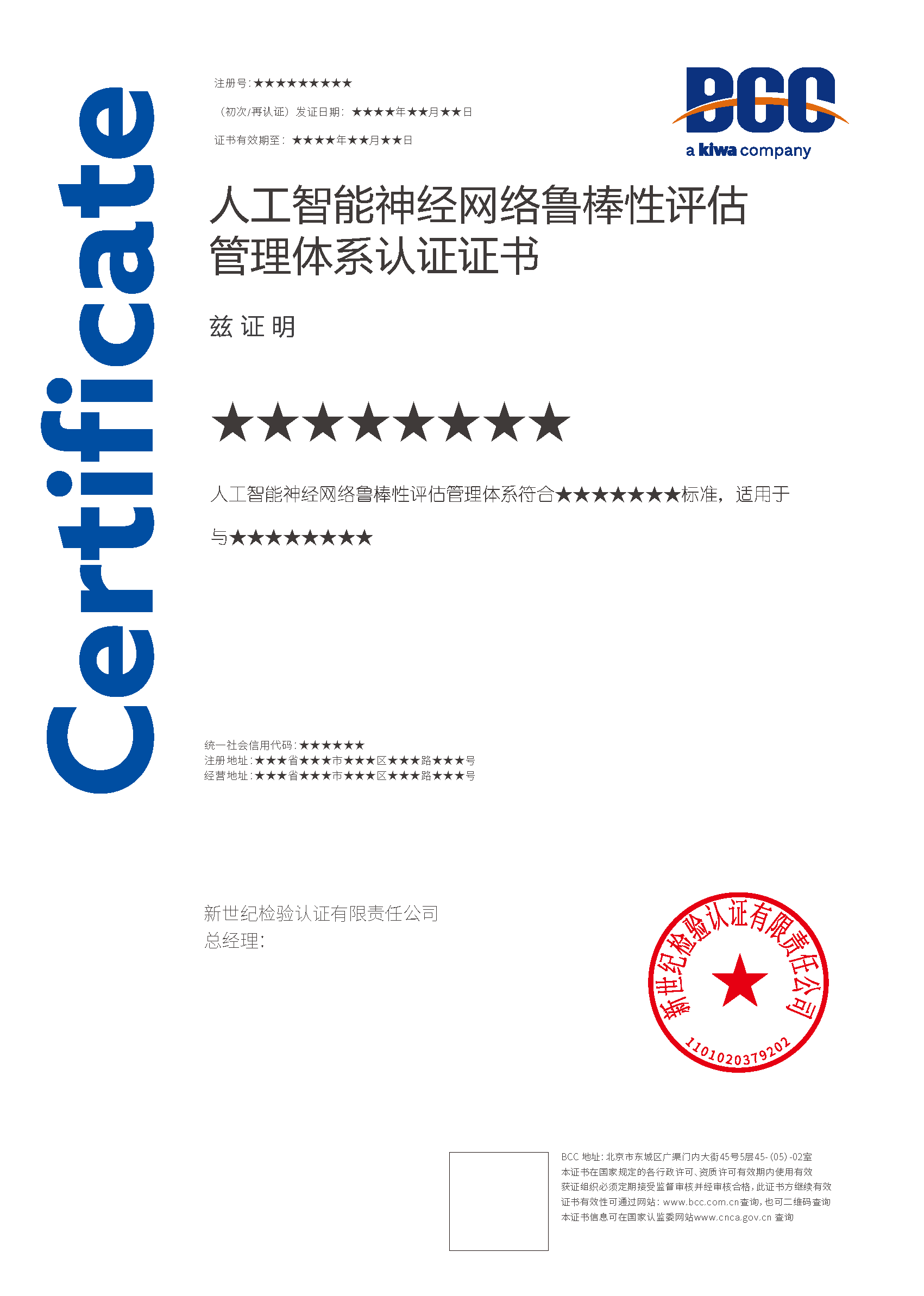 本頁涉及的認(rèn)證服務(wù)中均有對應(yīng)的《認(rèn)證實(shí)施規(guī)則》,BCC擁有其最終解釋權(quán)。任何組織及個(gè)人未經(jīng)BCC許可,不得以任何形式全部或部分使用(法律要求除外)認(rèn)證相關(guān)信息。如需獲取相關(guān)實(shí)施規(guī)則請用以下方式聯(lián)系獲取:電話:010-58579316 郵箱:fwjs@kiwa.cn
