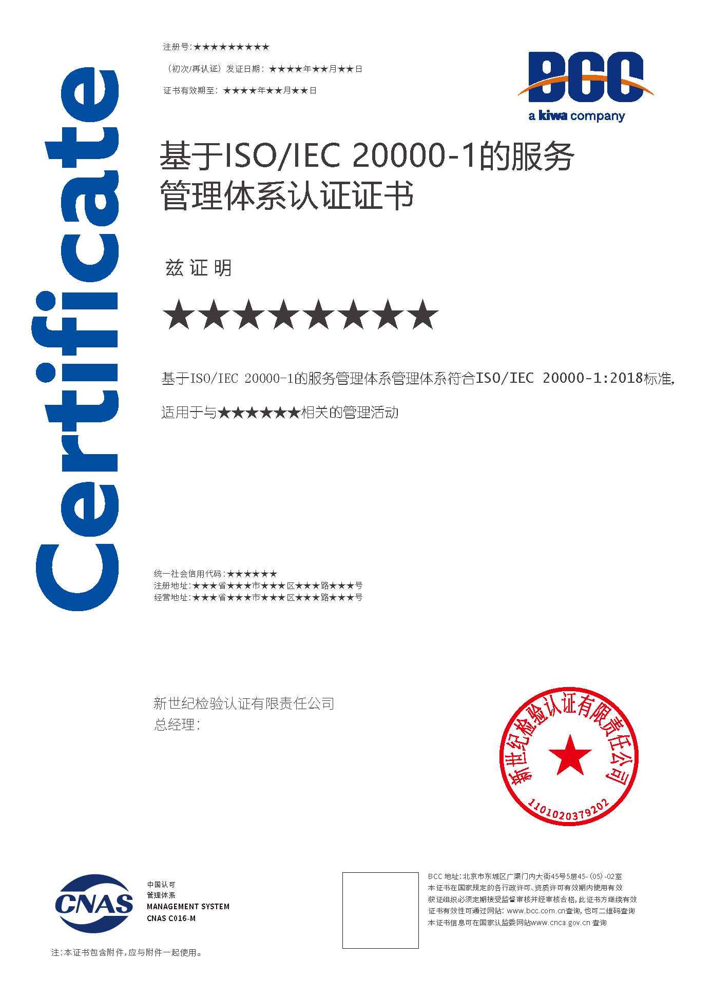 ISO/IEC 20000信息技術(shù)服務(wù)管理體系,該標(biāo)準(zhǔn)適用于信息技術(shù)服務(wù)管理行業(yè),是國際上公認(rèn)的信息技術(shù)服務(wù)標(biāo)準(zhǔn)。通過運(yùn)行此標(biāo)準(zhǔn)規(guī)范旨在幫助組織衡量與了解自身的IT服務(wù)品質(zhì),建立適合企業(yè)的“IT服務(wù)管理”流程與方法,提升系統(tǒng)及其服務(wù)的可靠性及可用性,促使組織的服務(wù)流程更加完善,提升客戶的滿意度,增值企業(yè)的服務(wù)價(jià)值。