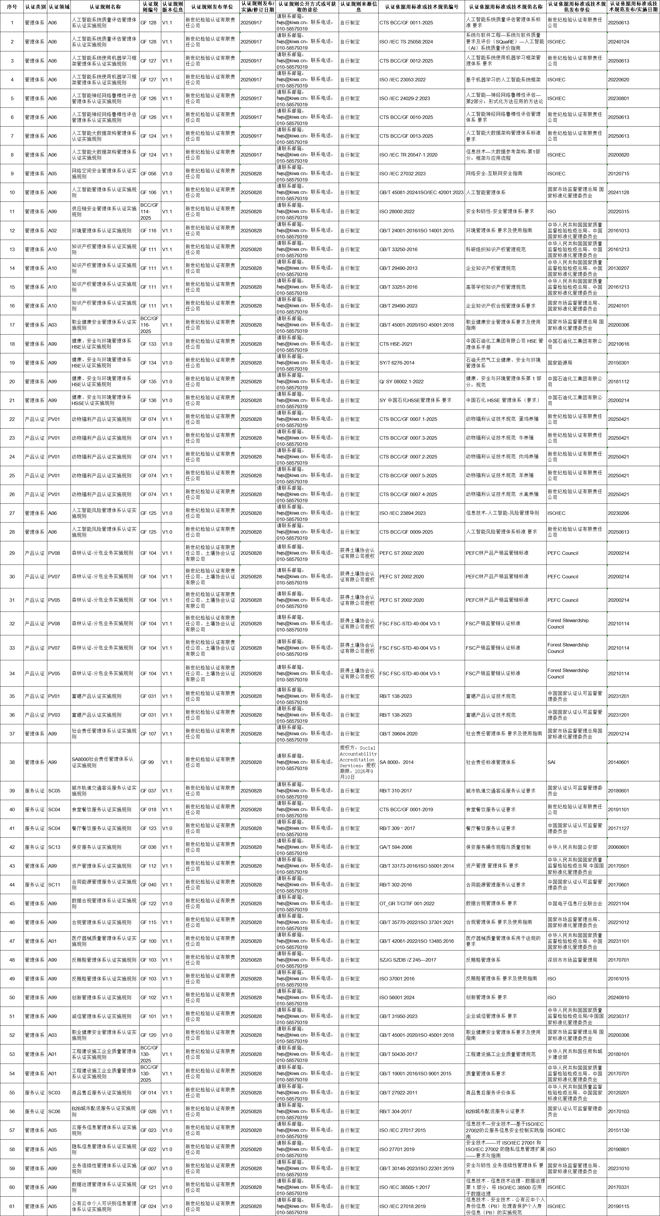本公司實(shí)施的認(rèn)證規(guī)則均已按照《國家認(rèn)監(jiān)委關(guān)于加強(qiáng)認(rèn)證規(guī)則管理的公告》(2025年第9號)要求備案。如需詳細(xì)內(nèi)容請用以下方式聯(lián)系獲取。電話:010-58579319 郵箱:fwjs@kiwa.cn