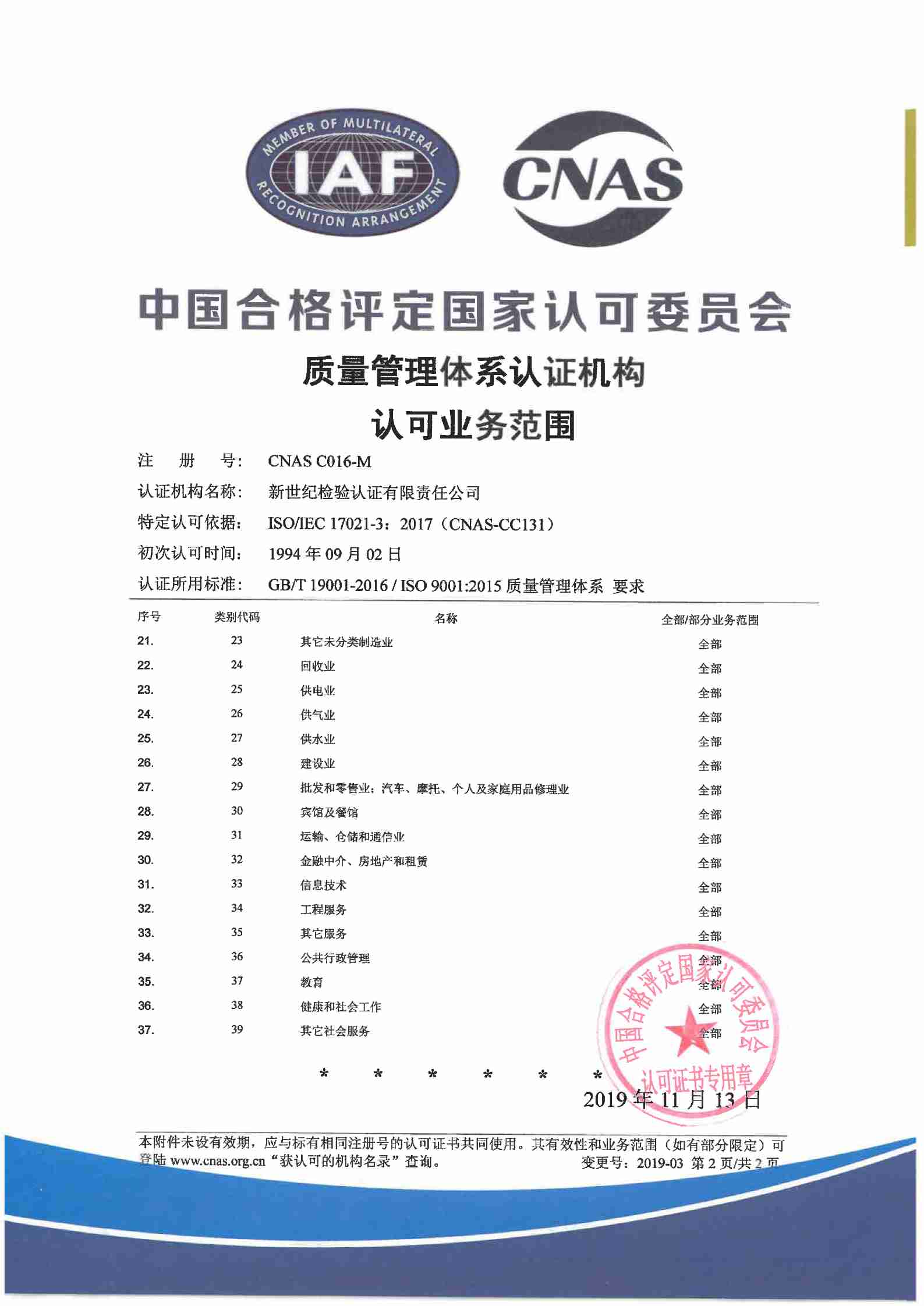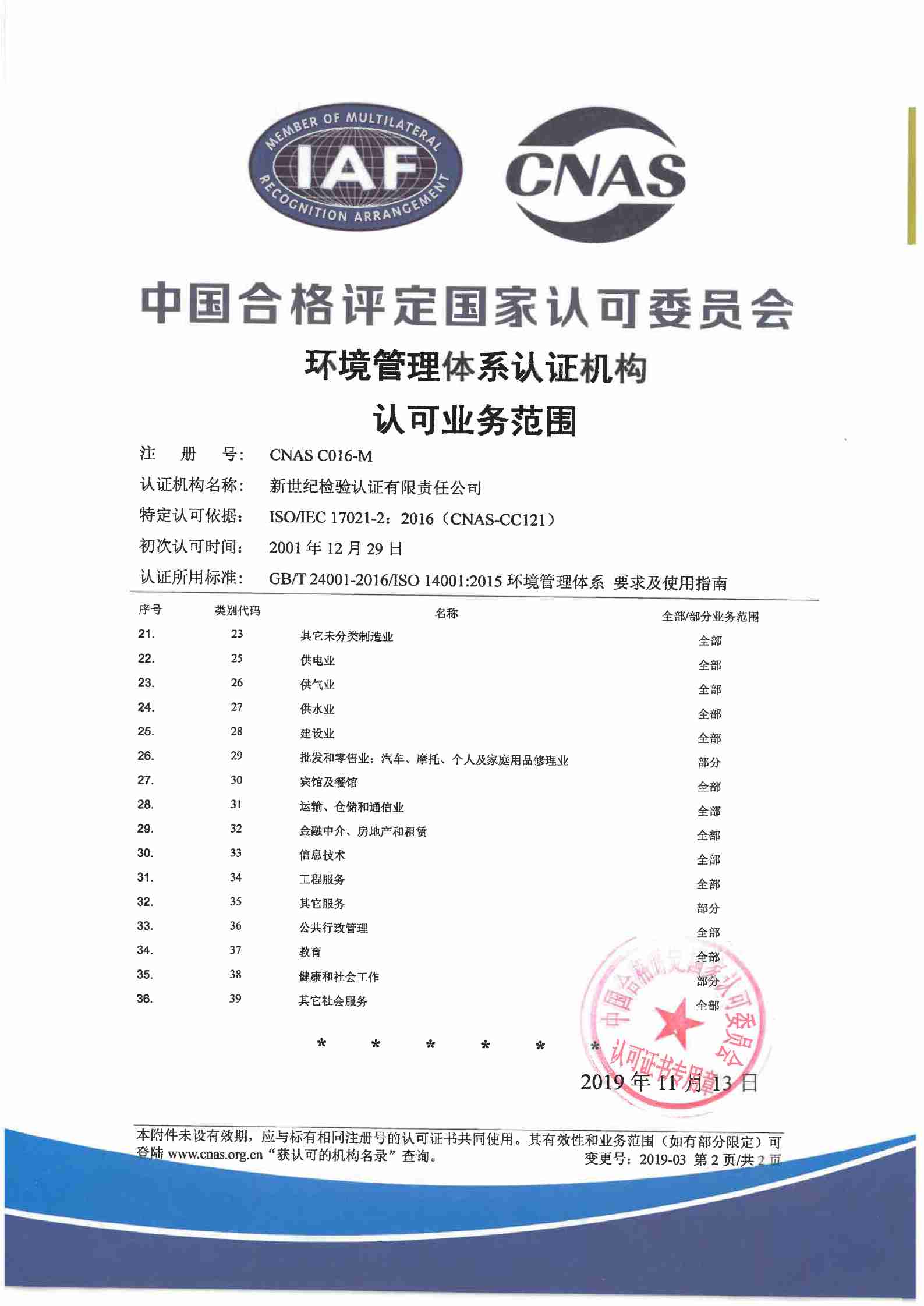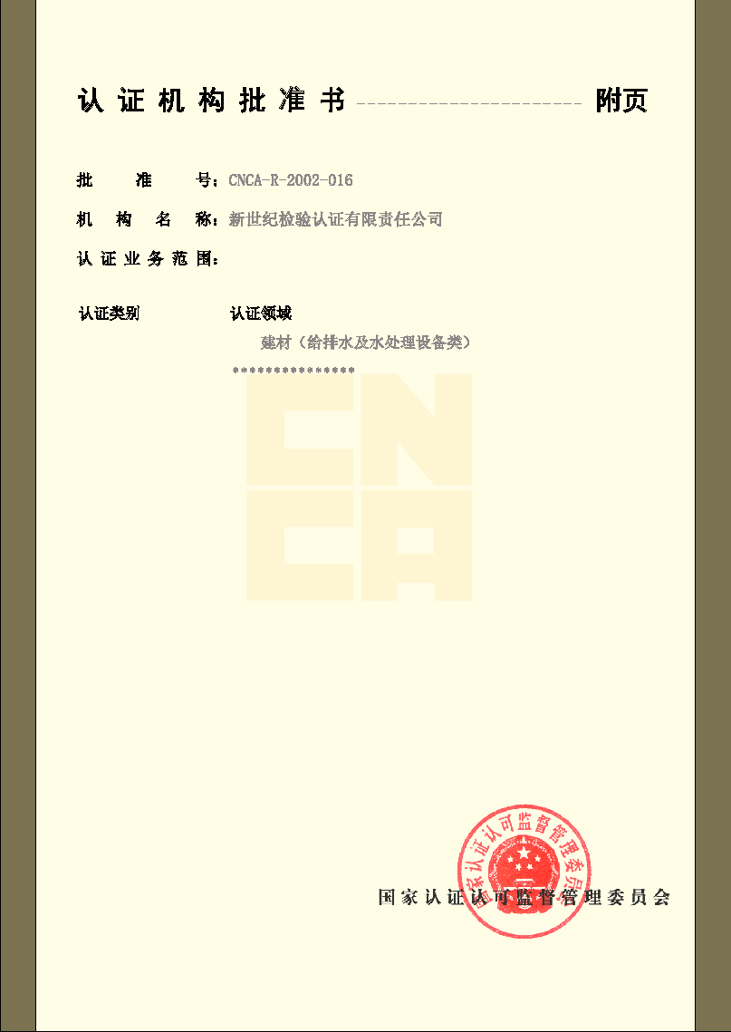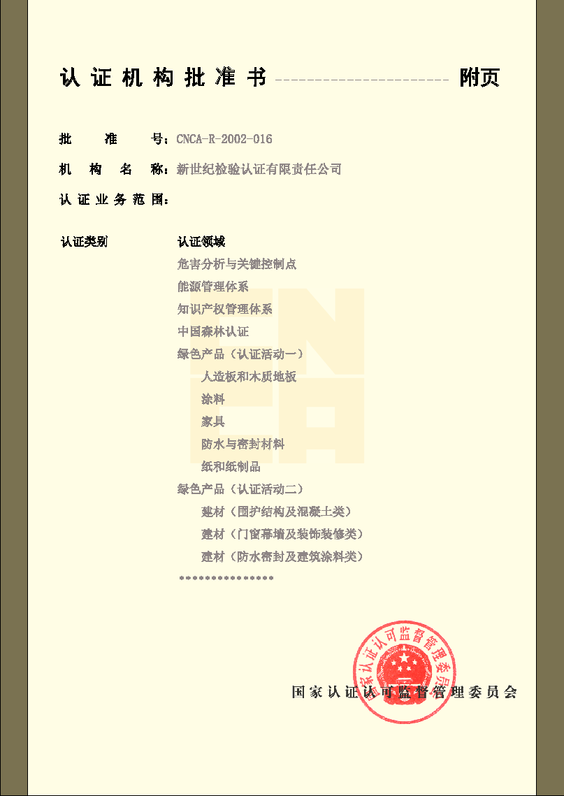 環(huán)境管理體系認證機構認可證書(二)