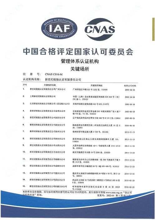 管理體系認證機構關鍵場所(一)