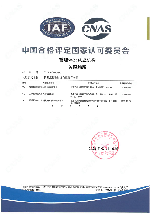 管理體系認證機構關鍵場所(二)