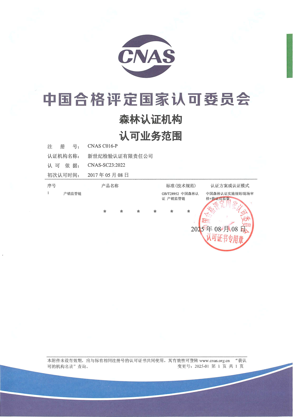 產品認證機構認可證書