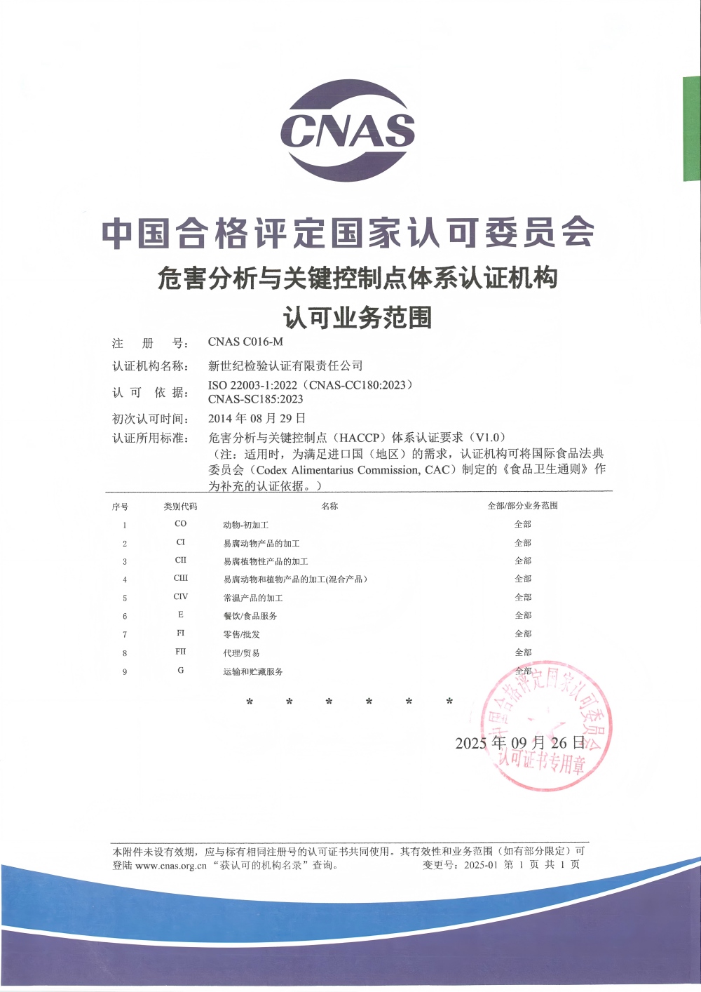 危害分析與關鍵控制點認證機構認可證書