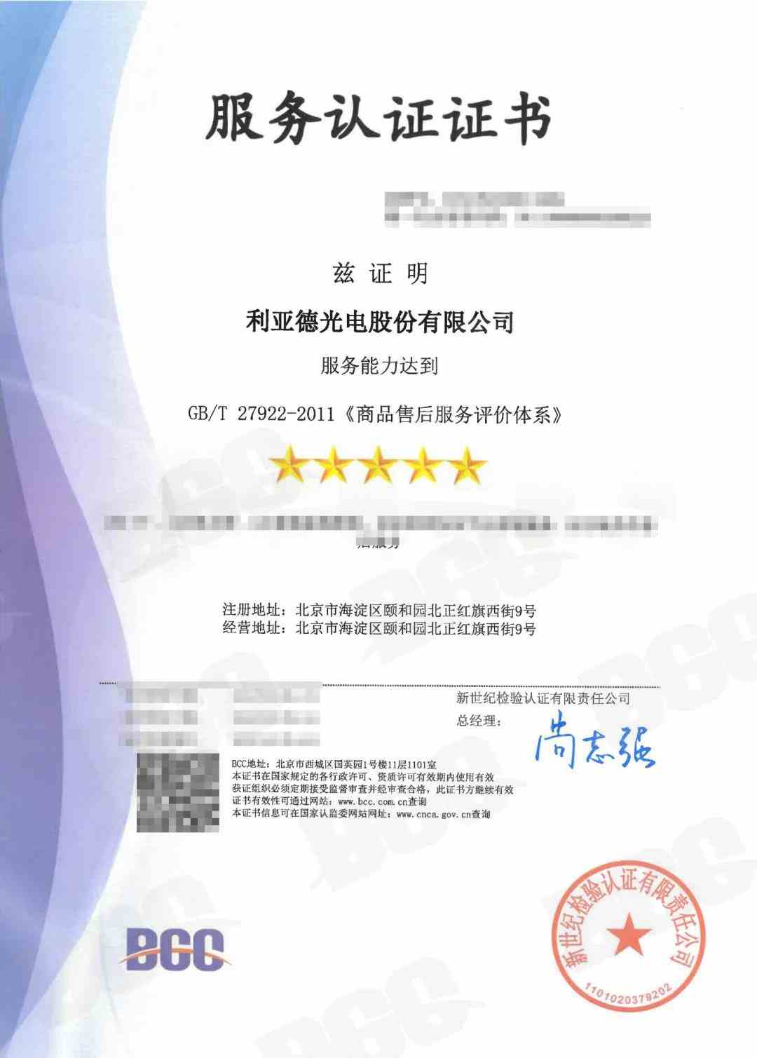 利亞德秉持“高品質(zhì)、優(yōu)服務(wù)、重誠信、盡職責(zé)、服務(wù),一切讓顧客滿意”的經(jīng)營理念,不斷提升企業(yè)的產(chǎn)品質(zhì)量和服務(wù)質(zhì)量,以優(yōu)質(zhì)服務(wù)能力獲BCC頒發(fā)的商品售后服務(wù)認(rèn)證五星證書,為未來進(jìn)軍家電市場的戰(zhàn)略布局奠定了堅實基礎(chǔ)。