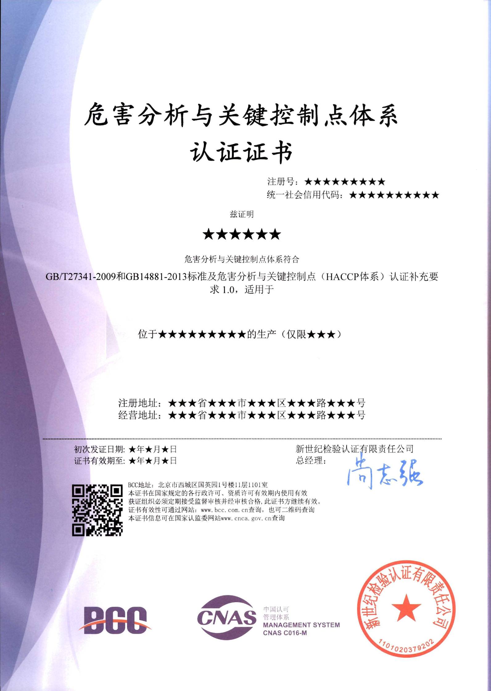 廣州專(zhuān)業(yè)haccp認(rèn)證證書(shū)