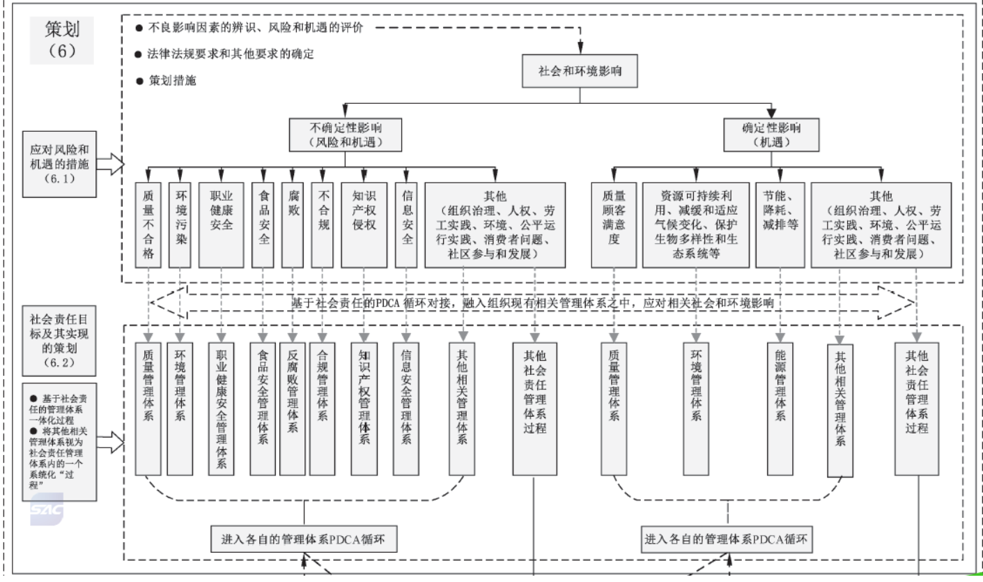 GB/T 39604將影響管理(風(fēng)險(xiǎn)管理)作為核心技術(shù)主線,采用“積極預(yù)防”的核心思想,鼓勵(lì)和指導(dǎo)組織通過管理體系,采取有效的預(yù)防和保護(hù)措施以消除不良影響因素和最大限度地降低不良社會(huì)影響,以及在可行時(shí)采取有效措施主動(dòng)促進(jìn)有益的社會(huì)影響,提高其社會(huì)責(zé)任績效,努力使組織對(duì)社會(huì)更負(fù)責(zé)任。
